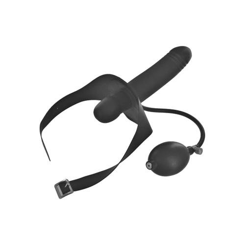 Sorgen Sie dafür, dass Ihr/e Partner/in auf dem Bett oder Sofa liegt und nähern Sie sich ihm/ihr mit diesem beeindruckenden aufblasbaren Knebel mit Dildo.