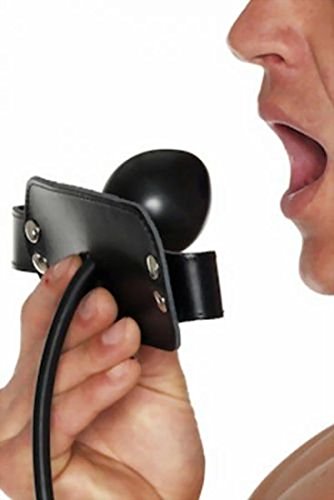 Lederknebel mit aufblasbarem Ballon und Pumpe.