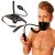 Hinter der Mundmaske verbirgt sich ein bissfester Knebel mit durchgehender Öffnung.
